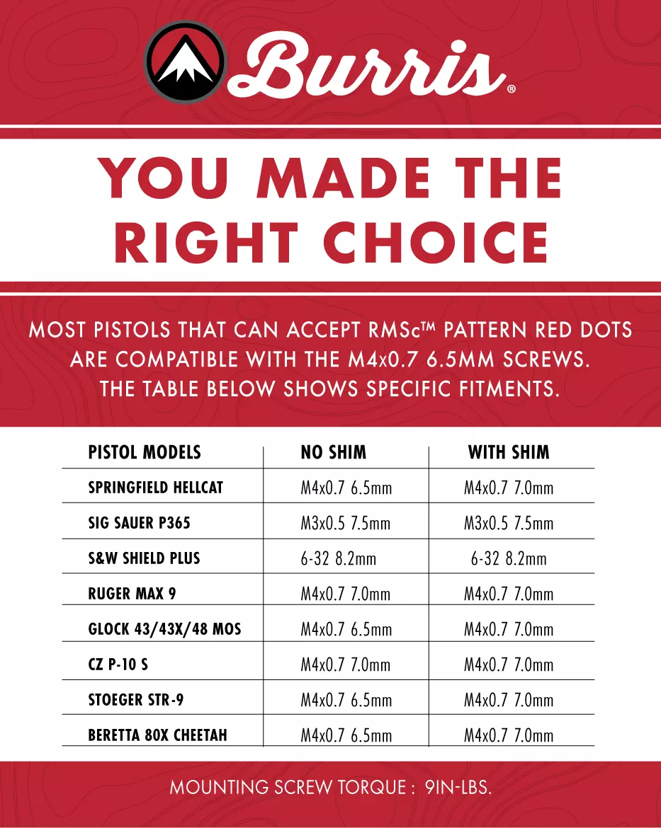 Ultima innovazione di Burris Optics nell'ottica a punto rosso, progettata specificamente per pistole sub-compatte e micro-compatte utilizzate nel trasporto quotidiano e nascosto. Con un peso inferiore a un grammo, FastFire C offre durata e affidabilità, dotato di una tecnologia "Always On" con un'autonomia di 25.000 ore, alimentata da una batteria CR2032. Il suo basso profilo consente una co-testimonianza assoluta o 1/3 con mirini aperti standard, eliminando la necessità di mirini elevati. Dotato di un sistema Intelligent Auto-Bright e di impostazioni manuali dell'illuminazione, questo punto rosso compatto garantisce una visibilità ottimale in qualsiasi condizione di luce.